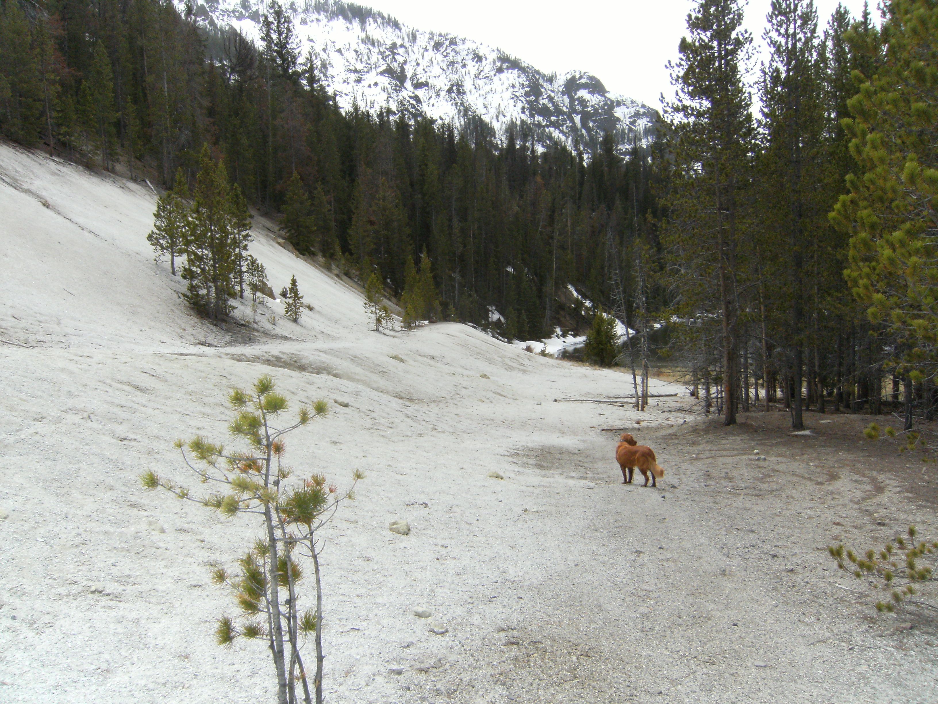Sulphur deposits around the lake. Lots of grizzly sign here