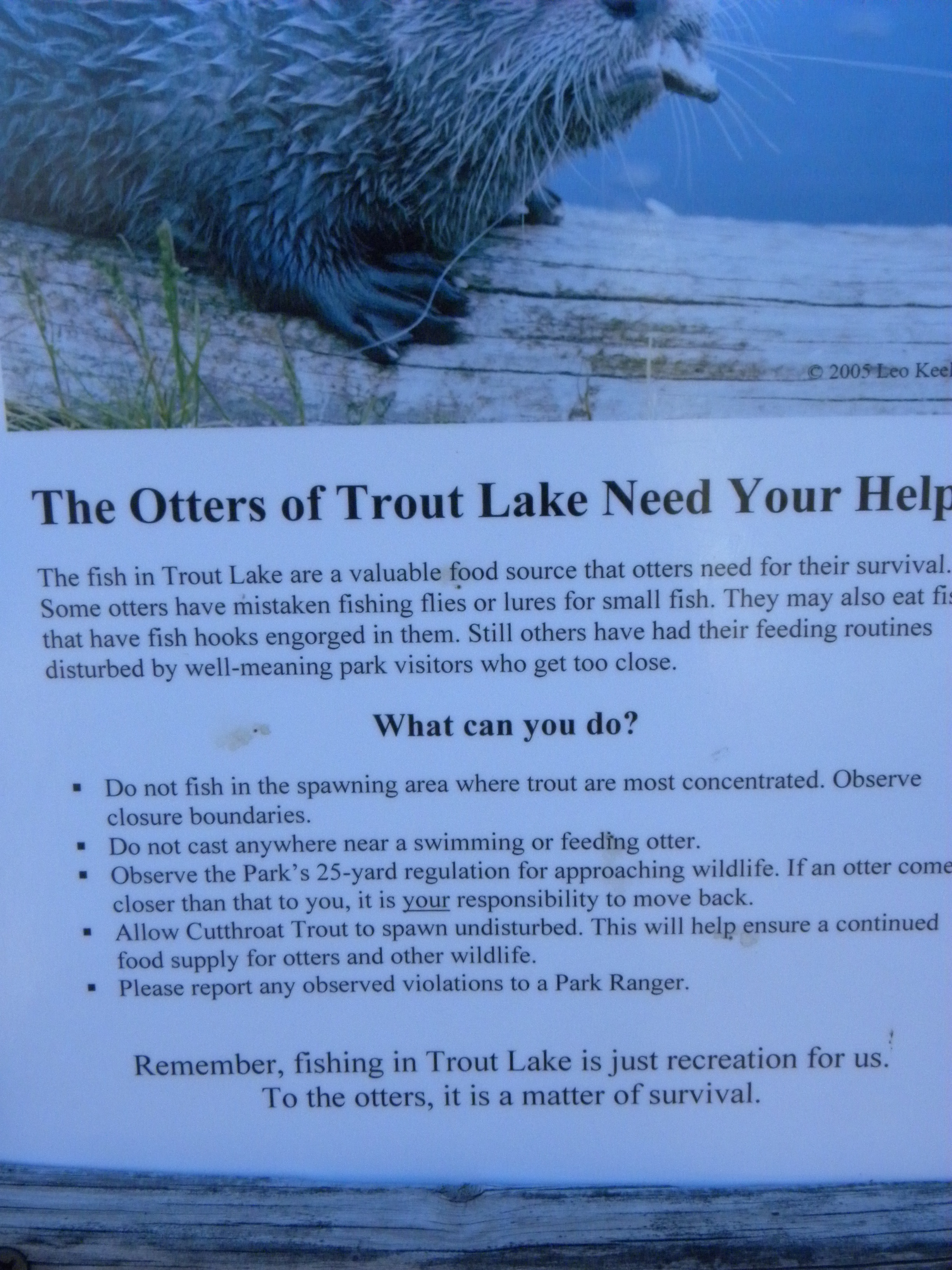 I stopped for a while and watched a second coyote, before heading up to Trout Lake. I wondered if the otters were active. Trout Lake is a very short hike/walk. Otters are often seen playing there. I didn’t see any otters today, but the lake was beautiful. I spent time snapping some photos of the Lake, of a gigantic ladybug, and a dragonfly.