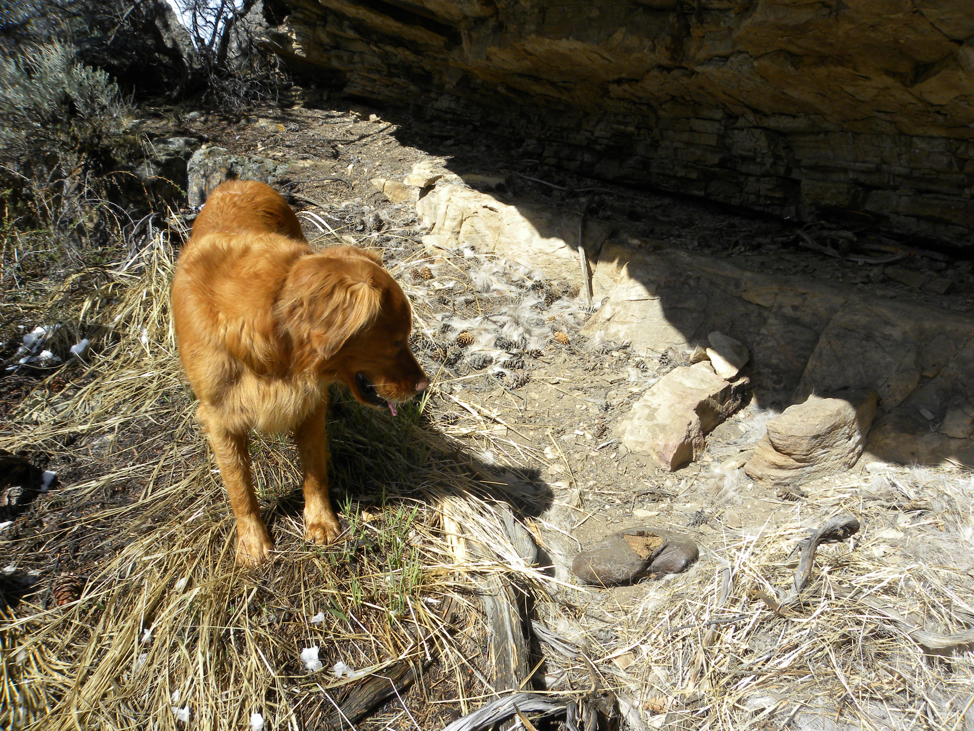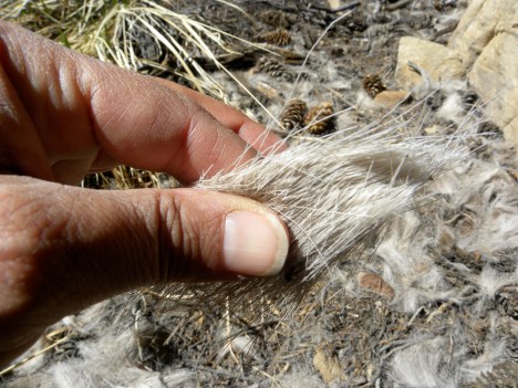 This site had absolutely no bones, only tons of plucked hair, the rumen, and a large pile of scat.  There was a cache mound but only hair underneath.