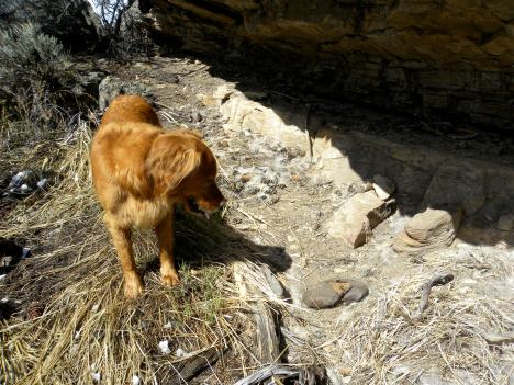 Not too far away Koda found a leg here or there.  I found the hide scattered as well.  This was an older kill, not this winter, so scavengers probably already got to it long ago.