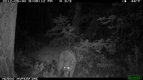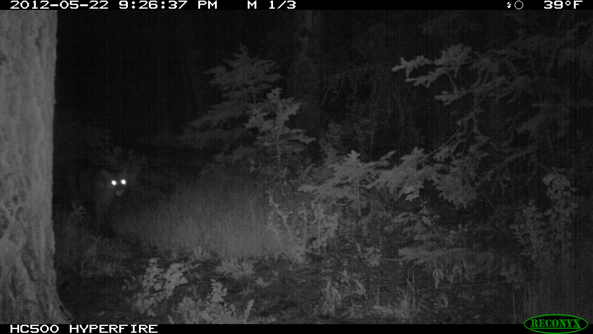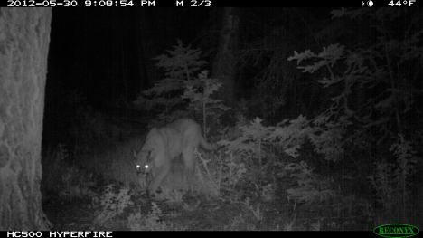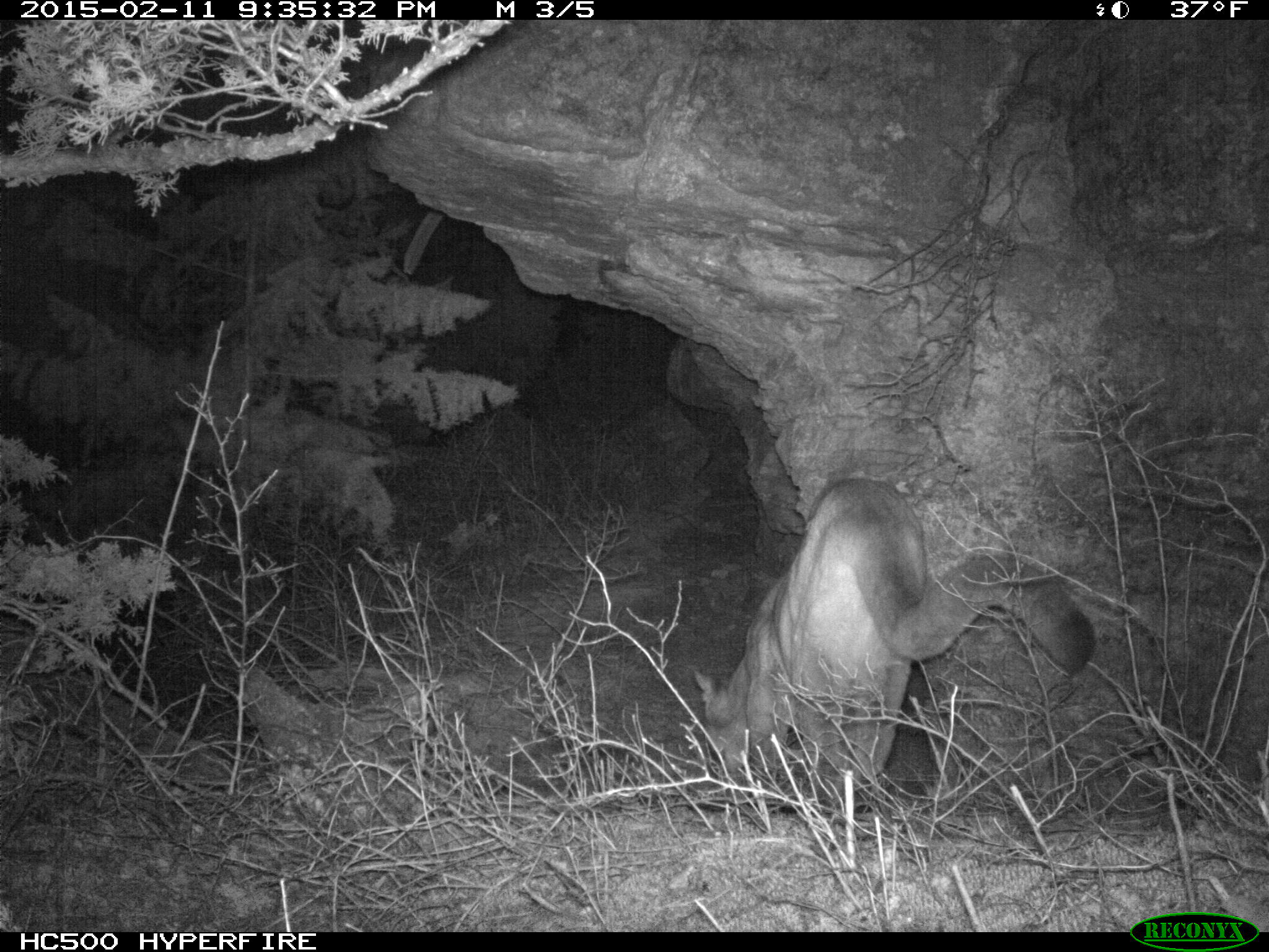 I put my trail cam on a ‘scrape’. Males will mark their territory with scrapes, usually under a big old conifer. Its also a scent post to attract females. If you can find a scrape, that seems to be your best bet of seeing cougars, as well as other animals. The study that’s going on in Yellowstone Park had footage of a grizzly bear lounging on a cougar scrape for a full day!