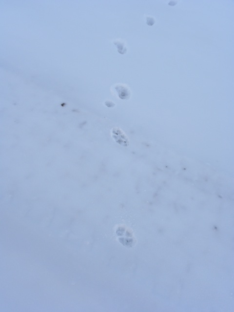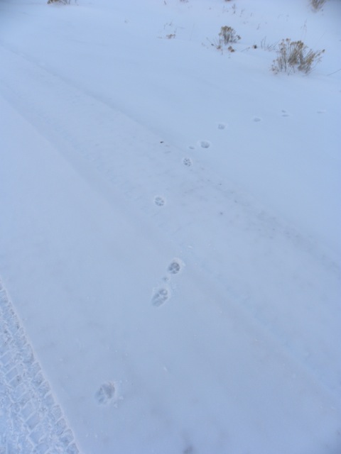 Following the fox’s track reminded me of when I followed a bobcat track up this same mountain last year. Up and up he went. Unlike coyotes or wolves who like to follow path (like deer paths), or course across a hill or mountain, this guy was going straight up and ignoring worn paths.