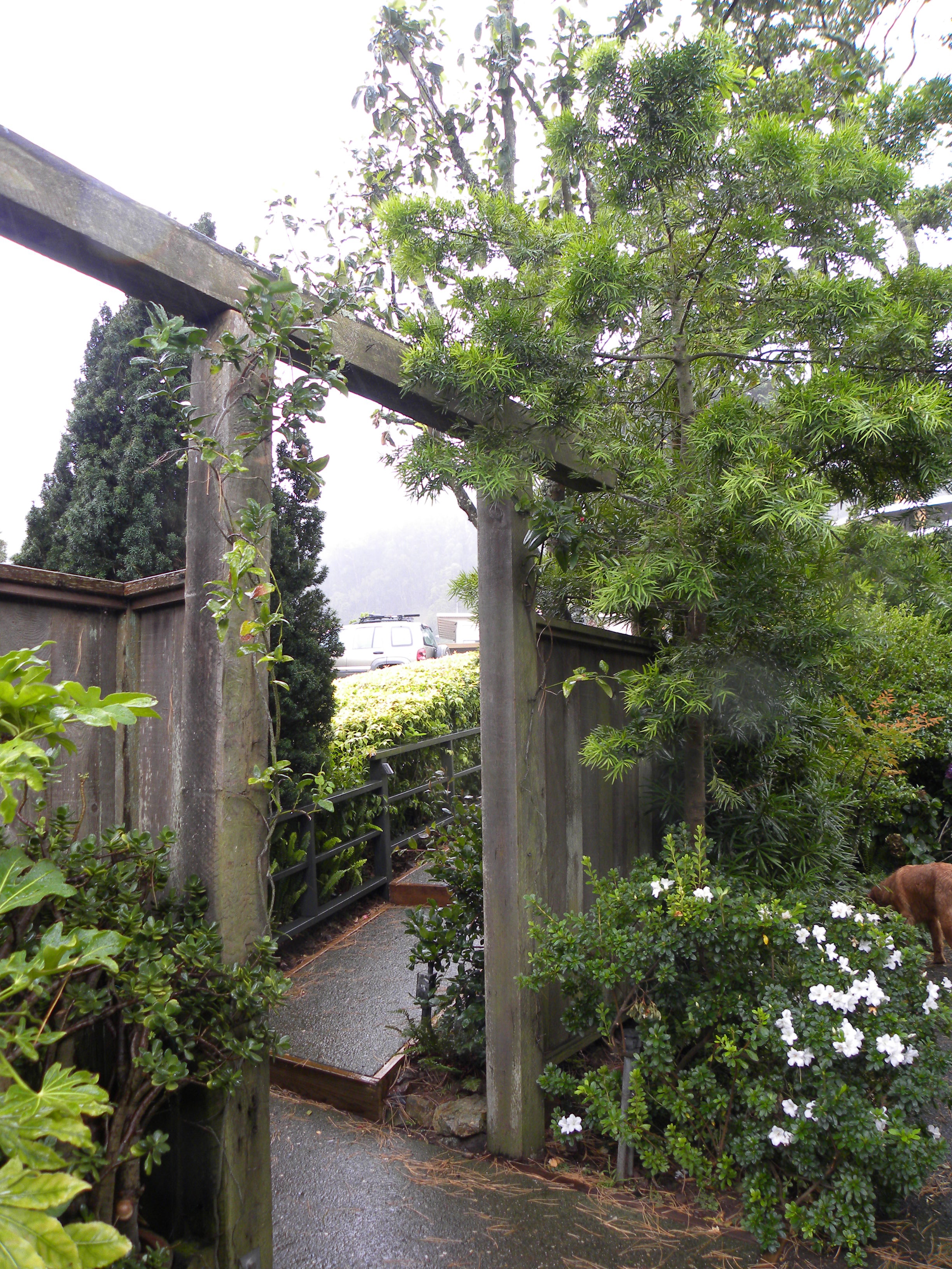 I thought I’d do a series of posts as I work to revive a tired garden in Sausalito. Portions of this entrance I’d worked on over 10 years ago, but because the owner’s gardener had no idea had to do real maintenance, the garden had disintegrated into disrepair. Portions of the design were still intact, much of the original plant material still useful, but a total rehaul was necessary.