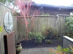 In looking at the last photo of the owners side, I want to place something at the very end to pop things out, so I chose a Sangu Kaku Japanese Maple, or Coral Bark Maple. This maple has a red bark year round and is highly attractive in leaf. But in order to see the maple, I’m going to have to move that large tree fern. I know this, but haven’t yet figured out where it will go. That will happen on site, during the design process.