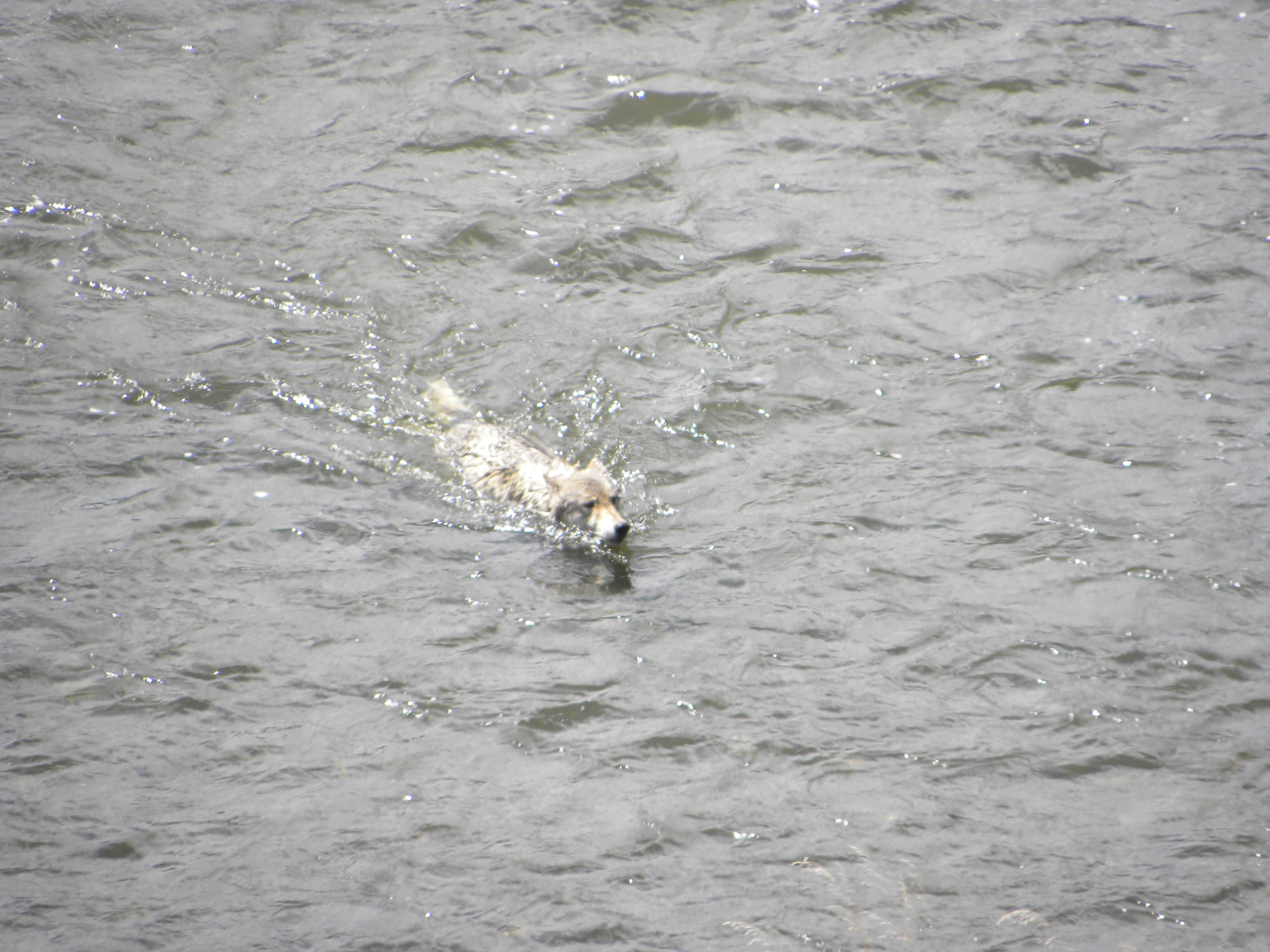 The boars had a brief face off for a few tense moments, but the bigger one just went his way. Bighorn sheep rams stood by the roadside; a coyote was on a bison calf carcass, and the bison babies and moms were all along the road. I watched a wonderful scene of a young frisky bison calf jump around, then come back and nuzzle his mom. The mom and him butted and rubbed their heads, then he was off romping again.